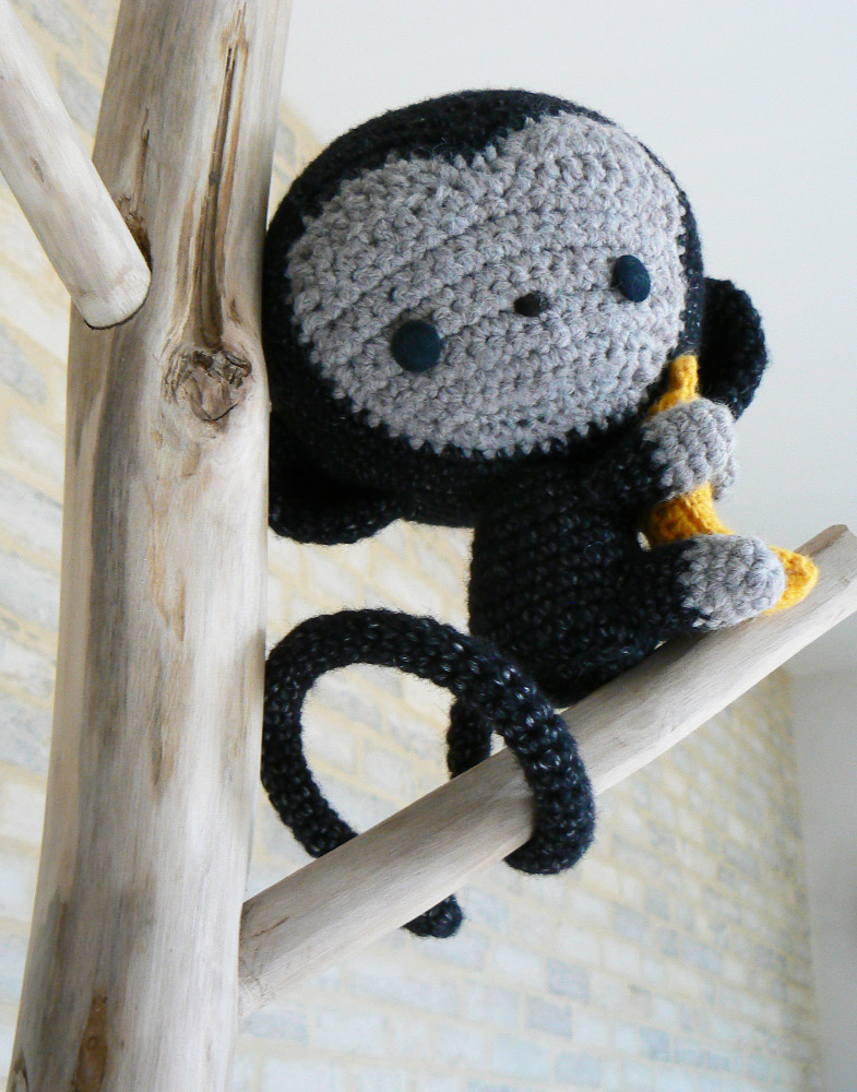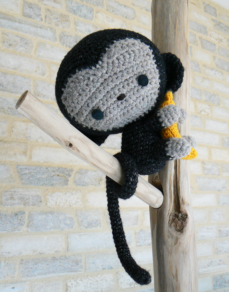 Je vous présente « Saru le singe » et sa banane réalisé à la main.